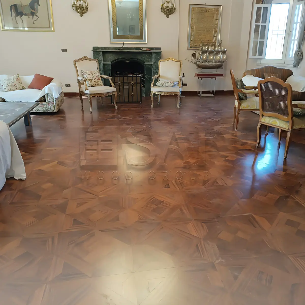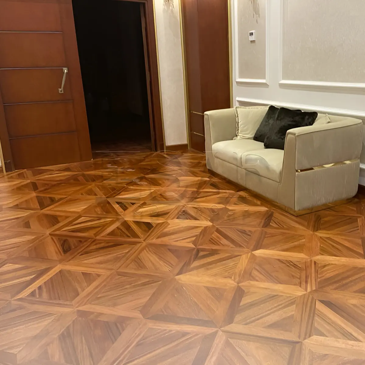 Parquet wood flooring is a premium choice for long-lasting elegance, crafted from high-quality natural wood with intricate geometric patterns. It offers a unique aesthetic and exceptional durability, perfect for luxurious homes and high-end spaces.
